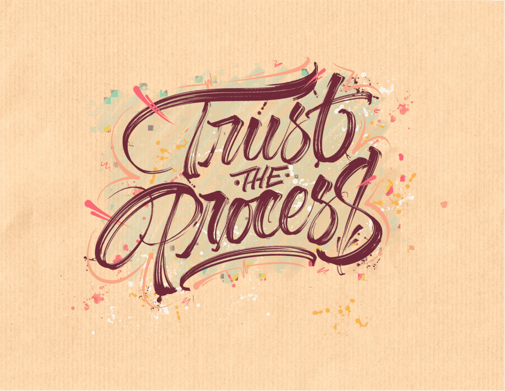 This is how every lettering piece should start — with small, fast, loose sketches. I call this the “throw-up-on-the-page” phase 😂 — just let your ideas flow!