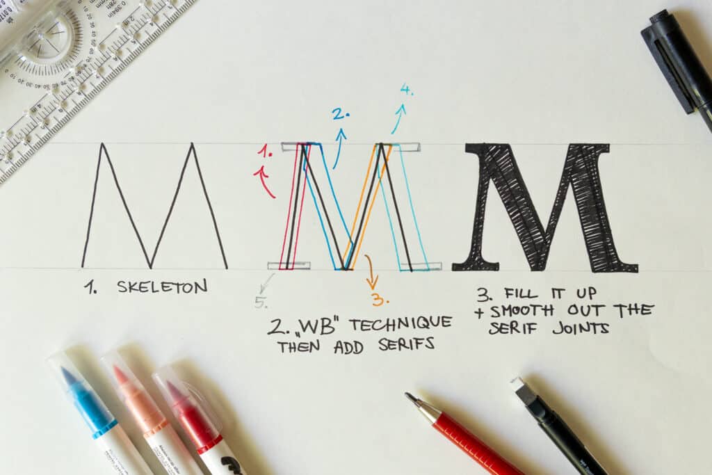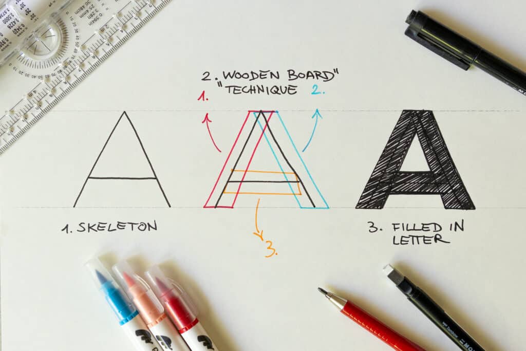 The way I create my hand lettering is with the “Wooden Board” technique. It’s a powerful method that allows you to draw even the most complex shapes.